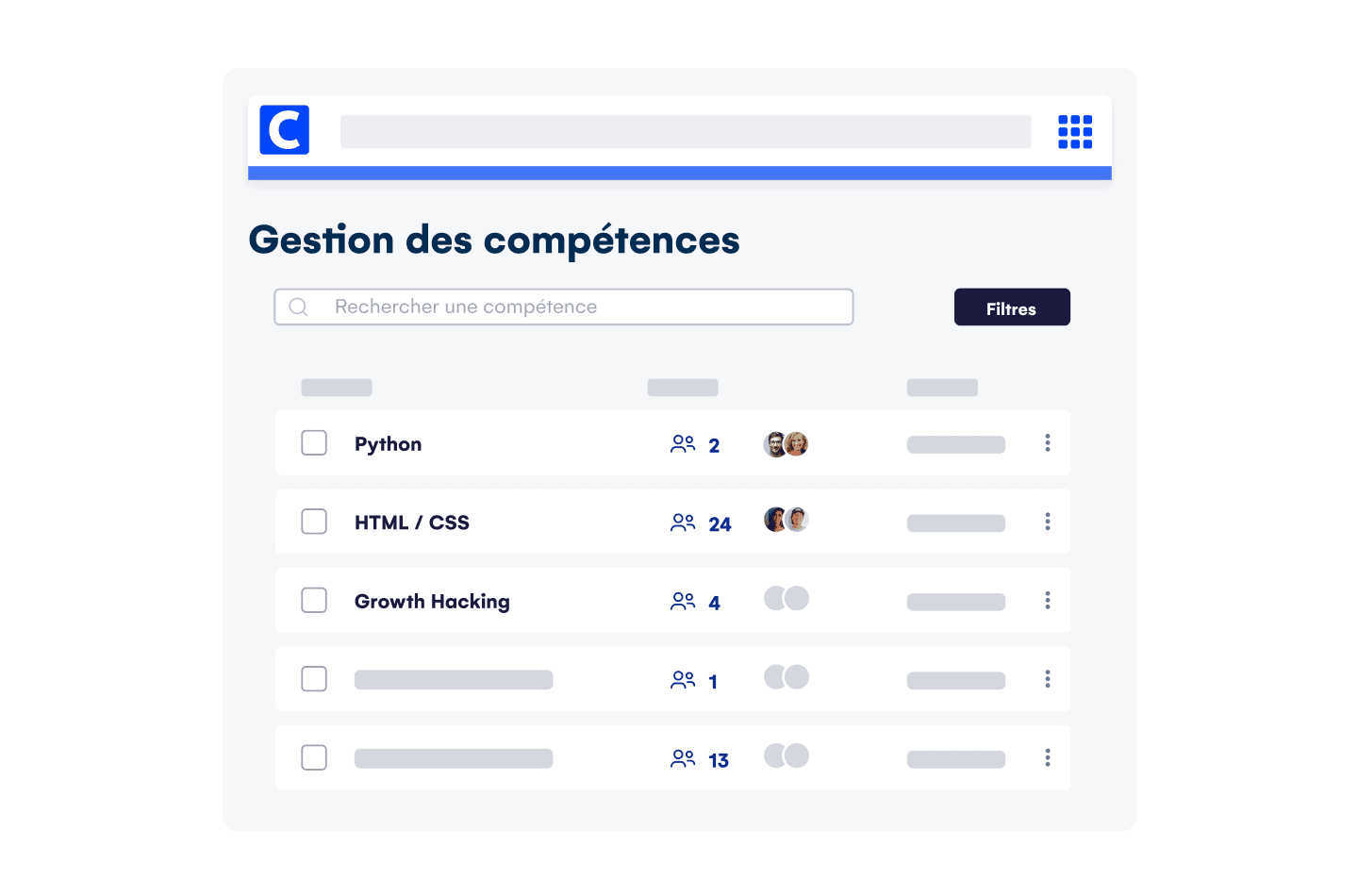 Accompagnez le développement des compétences des collaborateurs grâce à une solution innovante. Cegid HR vous aide à référencer, catégoriser et identifier les expertises disponibles (GPEC) et celles dont vous aurez besoin. Vos talents évoluent de manière agile, répondant ainsi aux enjeux de votre secteur.