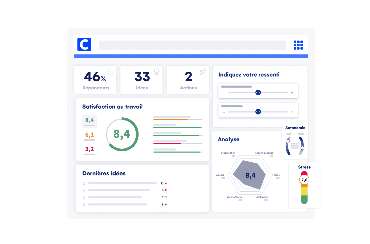 Utilisez notre plateforme pour améliorer l’engagement des collaborateurs . Via le portail de communication interne , vous visualisez les propositions d’amélioration, créez des sondages, obtenez des feedbacks, … C’est la solution pour optimiser la performance et la motivation des collaborateurs.