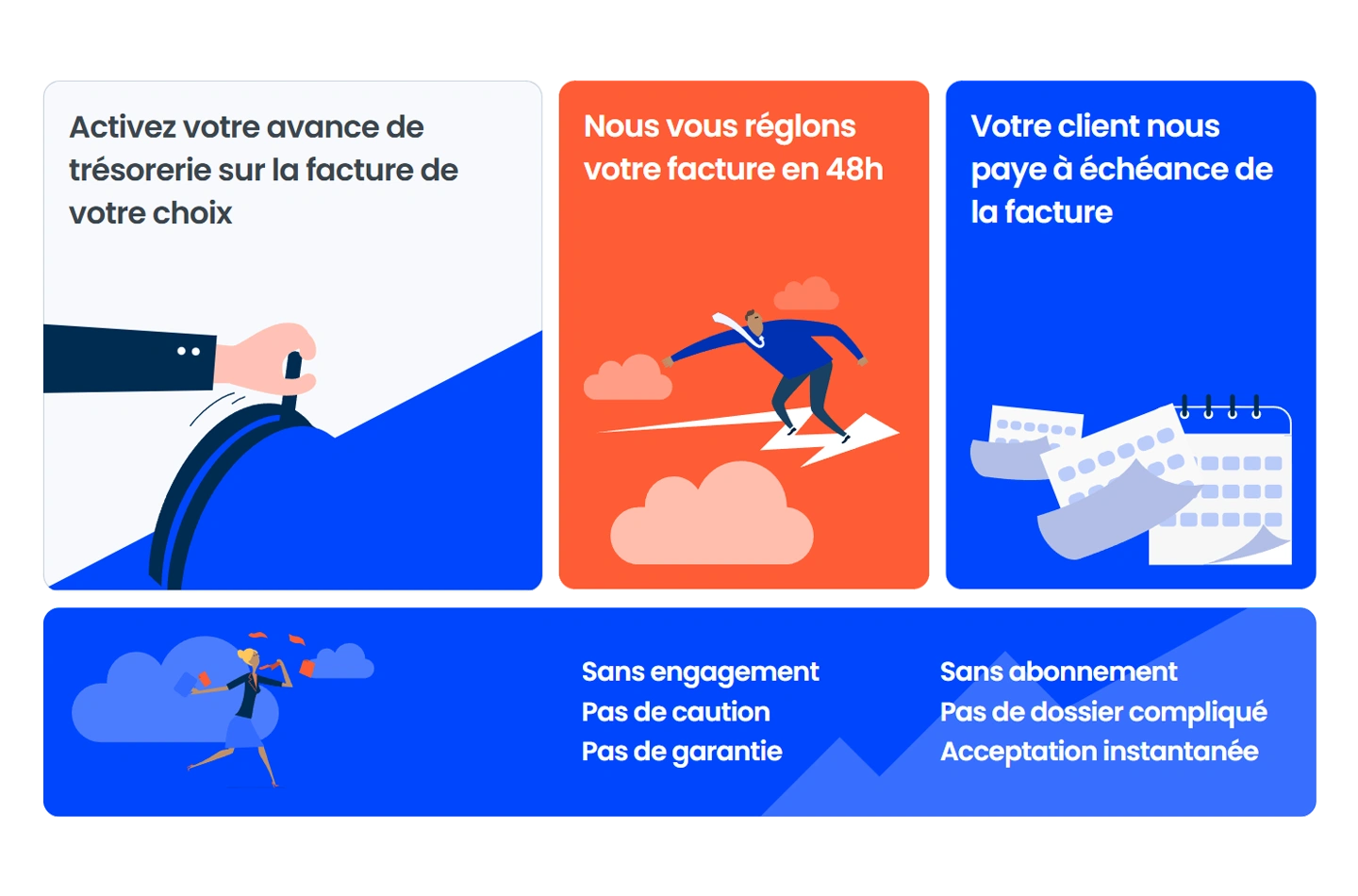 Renforcez votre trésorerie en 48h : simplifiez la gestion de votre facturation et accélérez l’encaissement de vos factures.