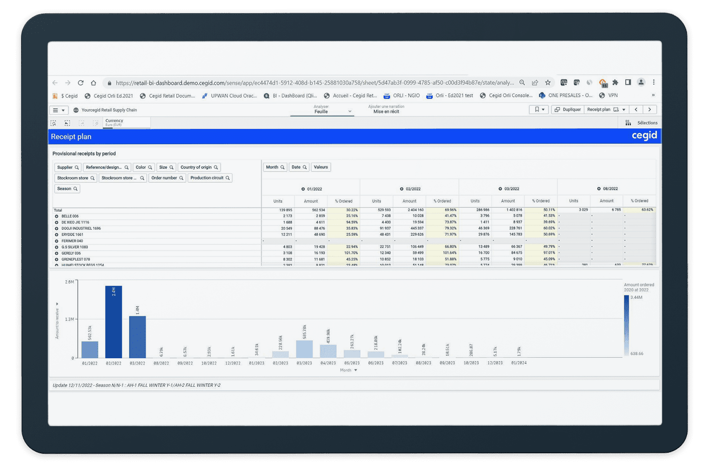 Cegid Orli permet de piloter la planification, la production et la sous-traitance de manière fine. Vous avez ainsi la matrîse de l’ensemble de vos flux marchandises pour être certains d’approvisionner vos canaux avec les bons produits au bon moment.