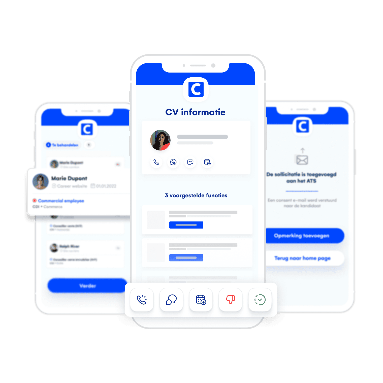 Managers hebben niet altijd een computer bij de hand om het wervingsproces te volgen. Geef ze een complete mobiele app voor opvolging! Publiceer vacatures, sorteer profielen, communiceer met kandidaten en houd zelfs video-interviews… Werven kan nu overal, zonder beperkingen.