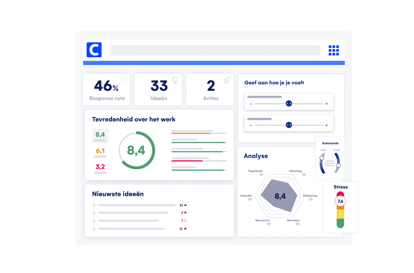 Gebruik ons HR-platform om de betrokkenheid van je medewerkers te vergroten. Met ons interne communicatieportaal kun je verbetervoorstellen bekijken, enquêtes maken en feedback verzamelen. Dit is dé oplossing om de prestaties en motivatie van je team te verbeteren.