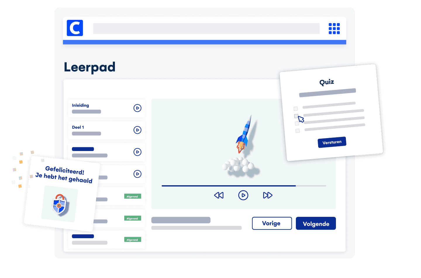 Stel leerinhoud samen op een manier die perfect aansluit bij de behoeften van je organisatie. Ons LMS maakt het eenvoudig om trainingen te ontwikkelen en aan te passen. Profiteer van functies zoals voortgangscontrole, populaire modules, recente activiteiten, het delen van inhoud en verbeterde communicatie om je leeraanbod naar een hoger niveau te tillen.
