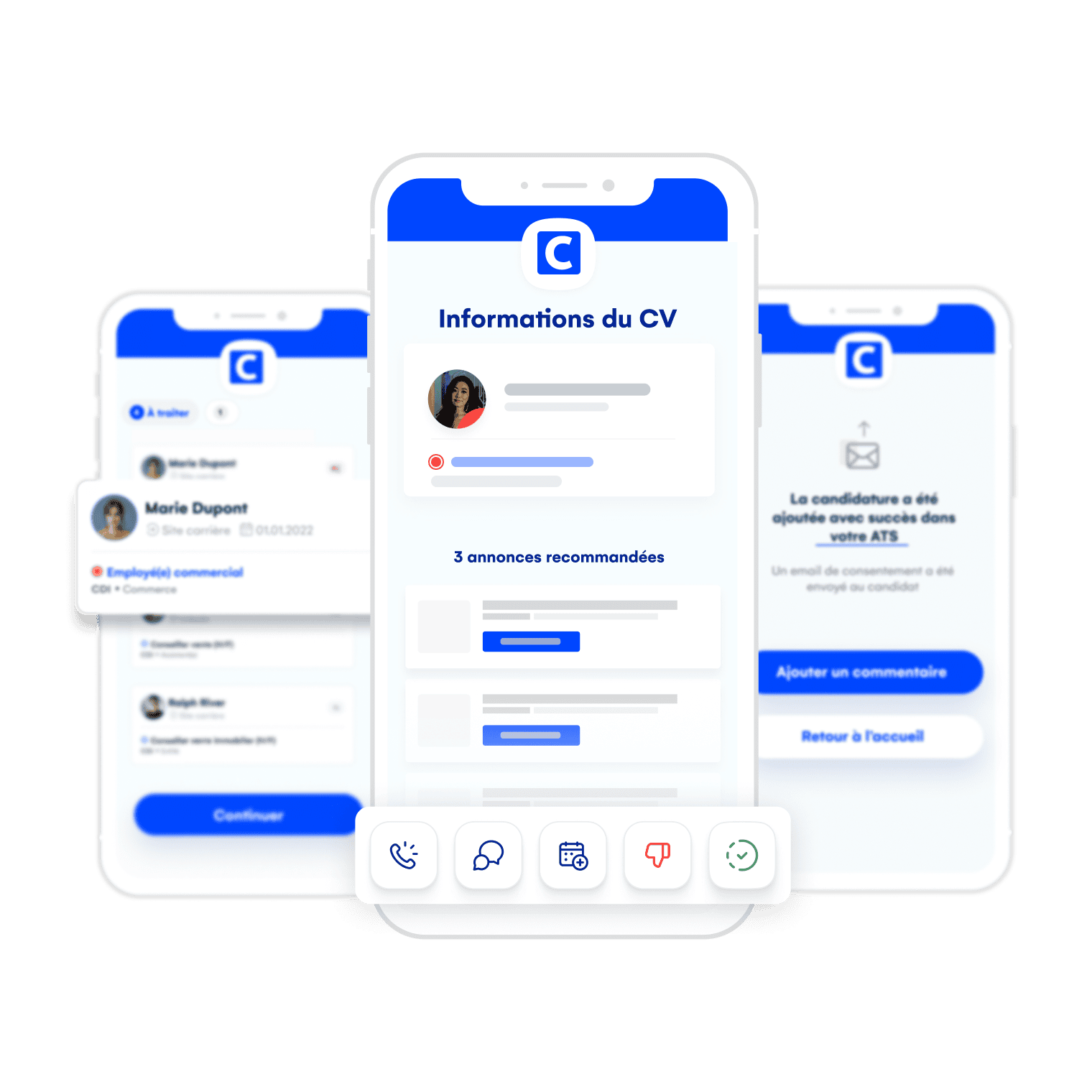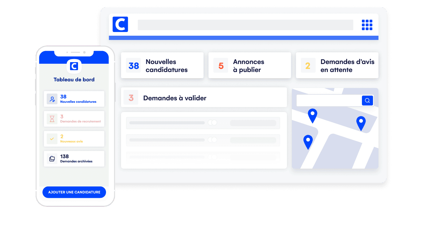Les gestionnaires n’ont pas toujours d’ordinateur à portée pour suivre les recrutements en cours. Offrez leur une application mobile complète pour le suivi ! Publication des offres d’emploi, tri des profils, communication avec les candidats et même entretiens vidéo… Recrutez partout, sans contraintes.