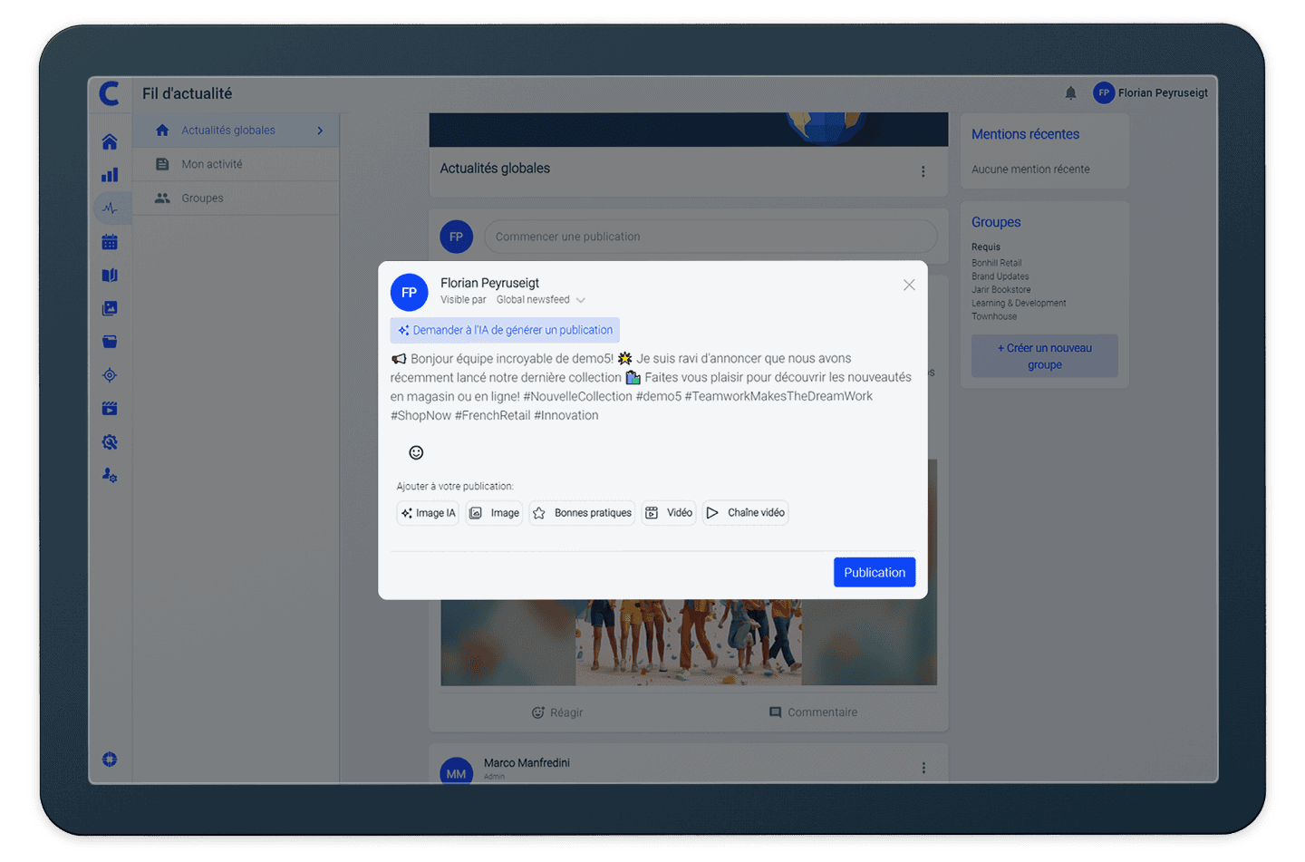 Chaque enseigne a une stratégie de communication différente : que vous souhaitiez mettre à disposition des documents de formation, des procédures, un fil d’actualité, des vidéos et tutoriels… toute configuration est possible et adaptée à vos besoins de communication.