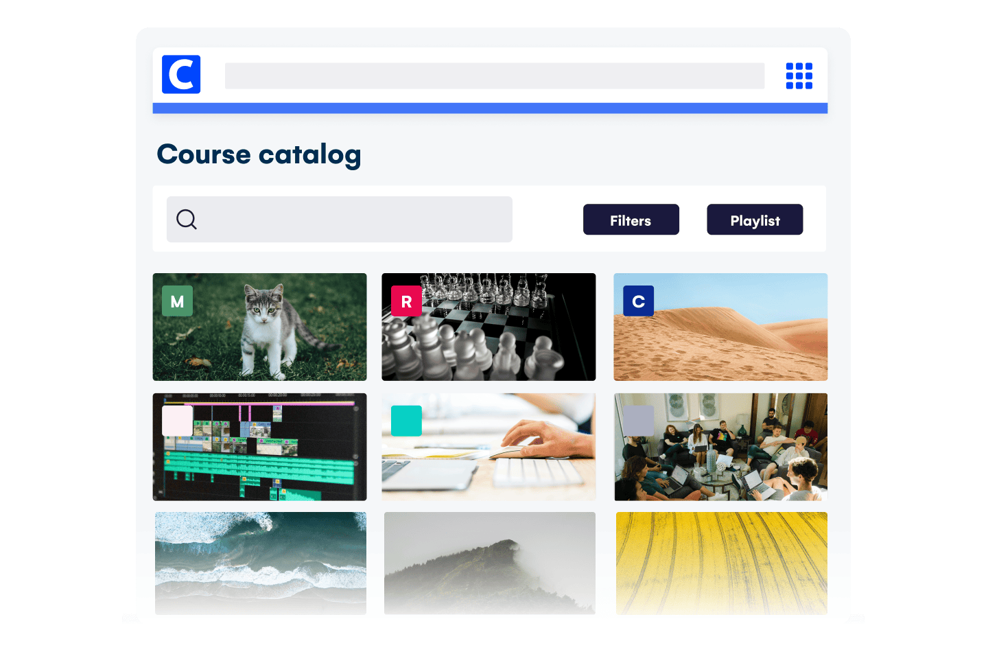 Genbrug eksisterende indhold og spar tid på at skabe læring. Jeres medarbejdere vælger selv de kurser, som hjælper med at udvikle deres kompetencer. Med fuldstændig frihed. Takket være færdigudviklet indhold kan medarbejderne tilegne sig nye færdigheder uden en underviser.