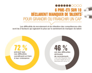 Les difficultés de recrutement et de rétention des compétences-clés sont les deux facteurs qui agissent le plus sur le sentiment de manquer de talents. – Source : bpifrance-lelab.fr