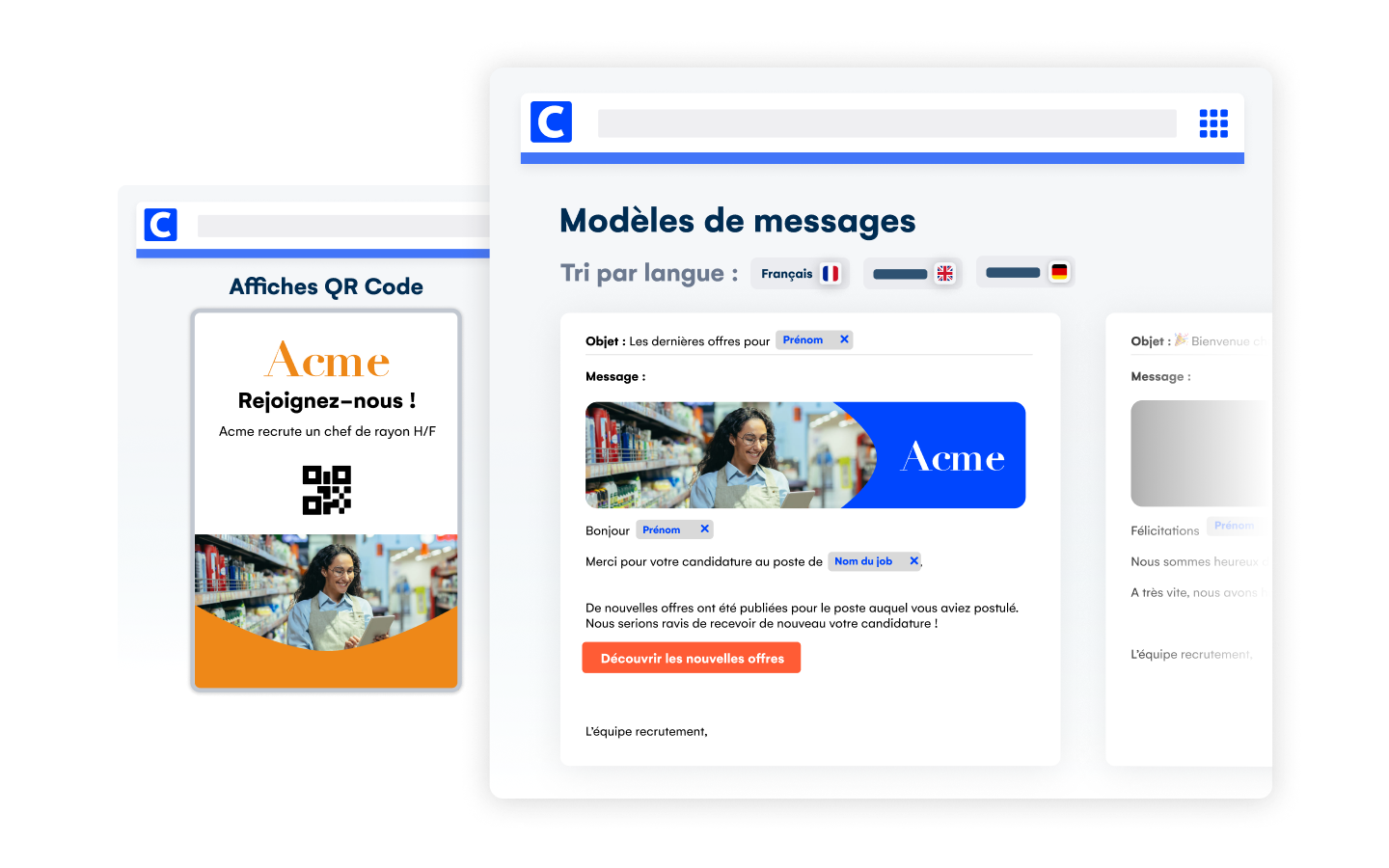 Personnalisez vos workflows de recrutement selon vos besoins spécifiques : création de formulaires sur mesure, automatisation des réponses, et suivi des candidatures en temps réel. La plateforme centralise l’ensemble des échanges et documents, offrant une vue d’ensemble claire à tous les intervenants du processus.