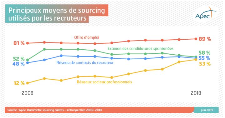 L’offre d’emploi a été le principal moyen de sourcing utilisé par les recruteurs. – Source : apec.fr
