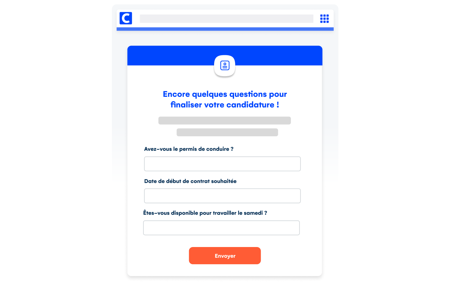 Dans le respect du RGPD, mais aussi pour simplifier la candidature, les questionnaires doivent aller à l’essentiel et se restreindre à des questions en rapport avec le poste, ex : obtention du permis poids lourd pour un poste dans le transport routier, ou encore langages de développement maîtrisés pour un développeur.