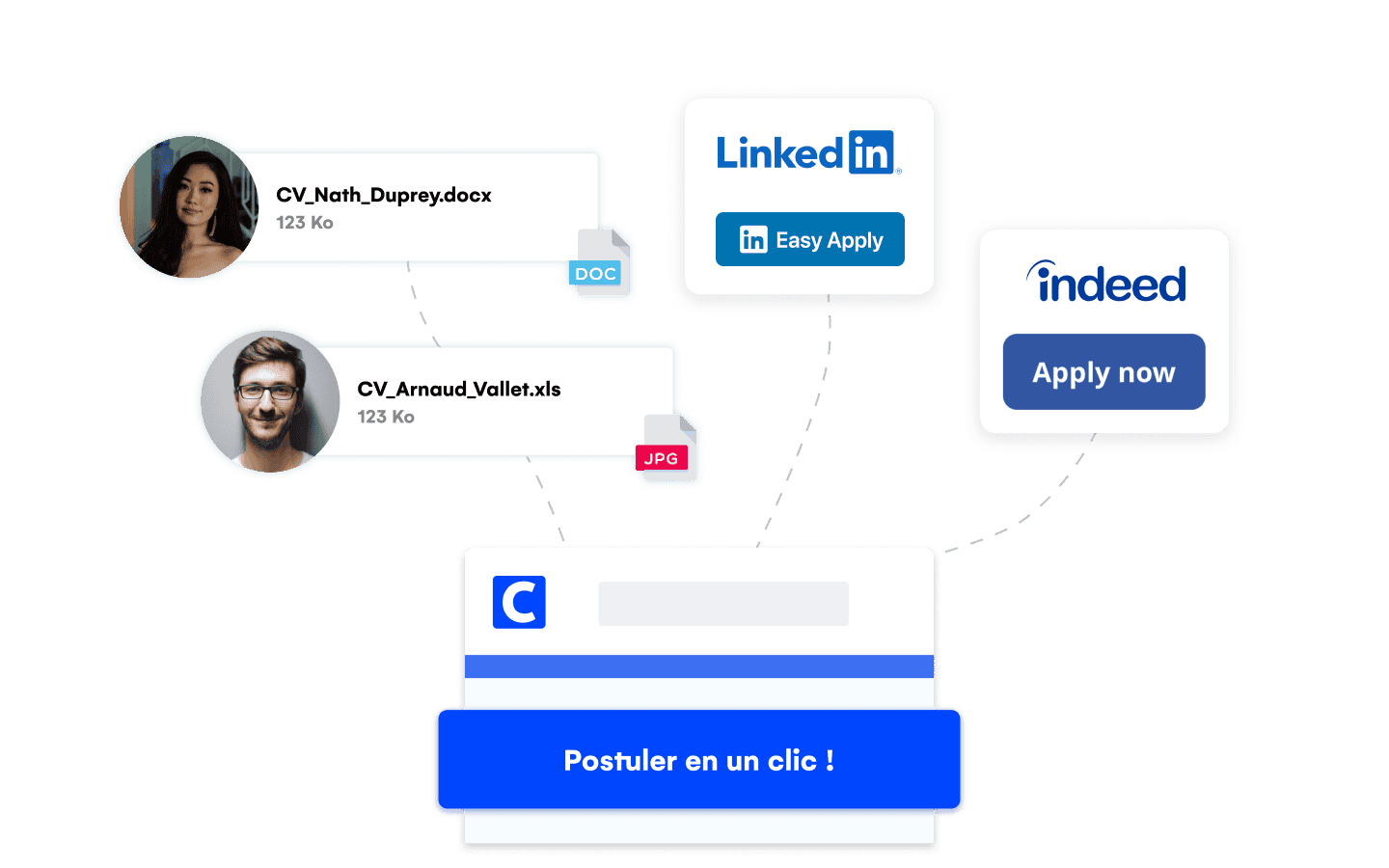 Les fonctionnalités Apply d’Indeed et de LinkedIn permettent aux candidats de postuler à vos annonces en quelques secondes, directement en utilisant leur CV enregistré sur le site ou leur profil LinkedIn.