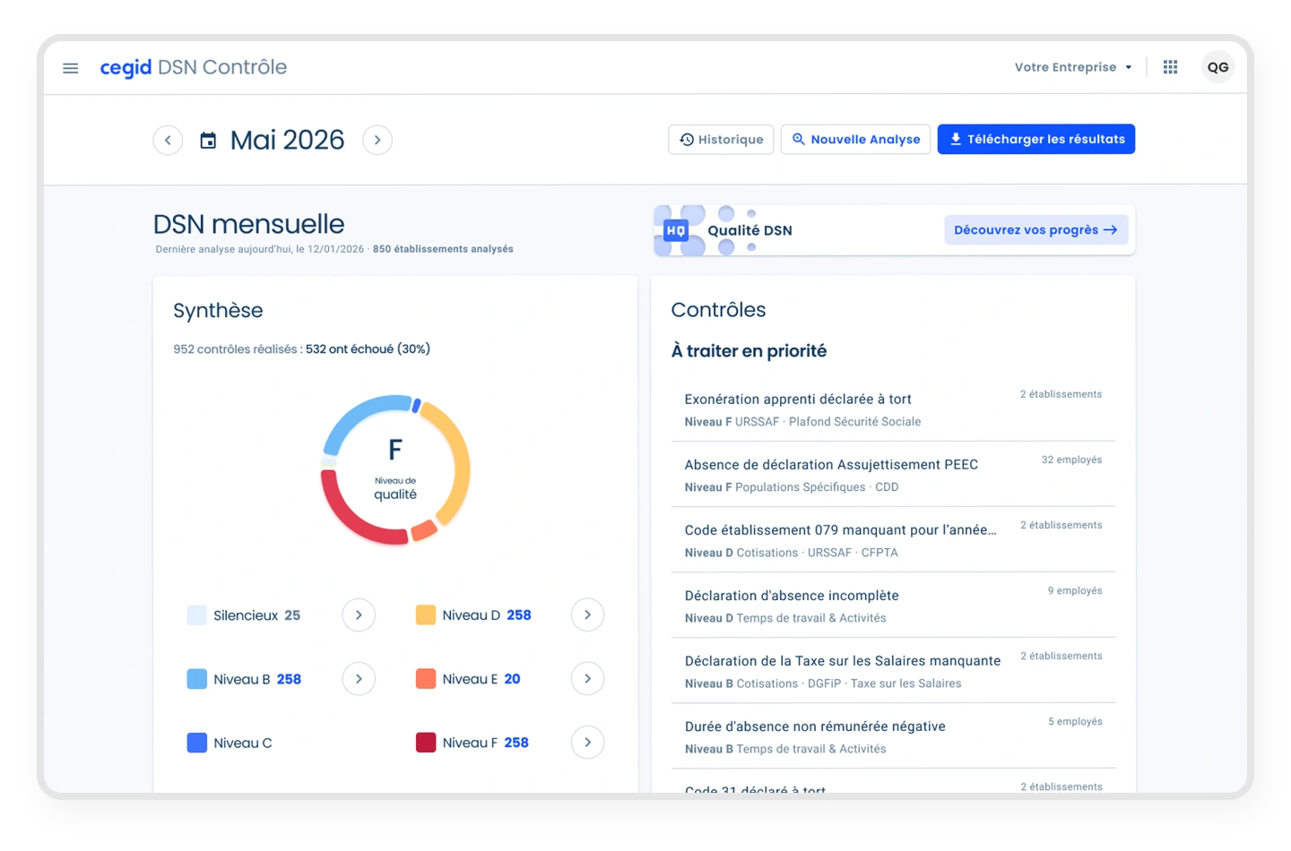 Une vision claire de la qualité de vos DSN, mois après mois.