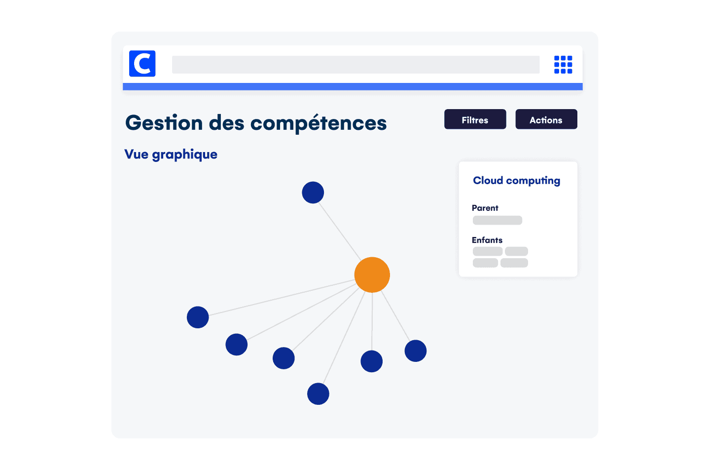 Développez les aptitudes de vos collaborateurs via des formations personnalisables. Avec notre solution de gestion de talents, vous créez du contenu en fonction des besoins des apprenants. Ils accédent à un catalogue de formations complet pour augmenter leurs compétences professionnelles. De votre côté, vous gérez les sessions en toute simplicité pour suivre leur carrière et leur développement.
