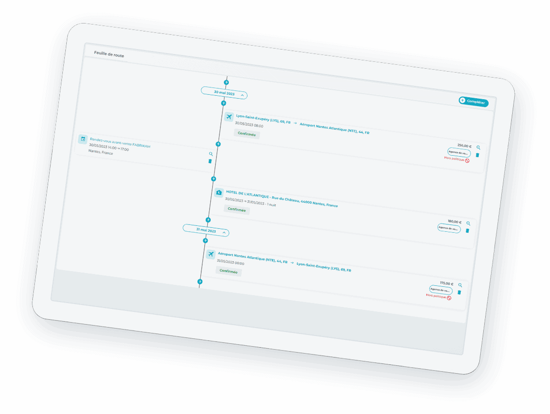 - Respect de la politique voyage et intégration cartes logées
