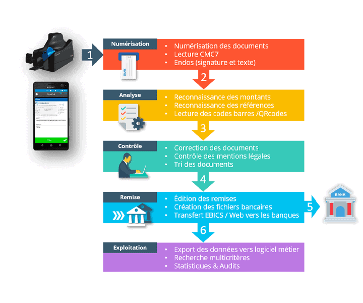 - Numérisation de vos chèques et documents associés (coupons, factures, …)