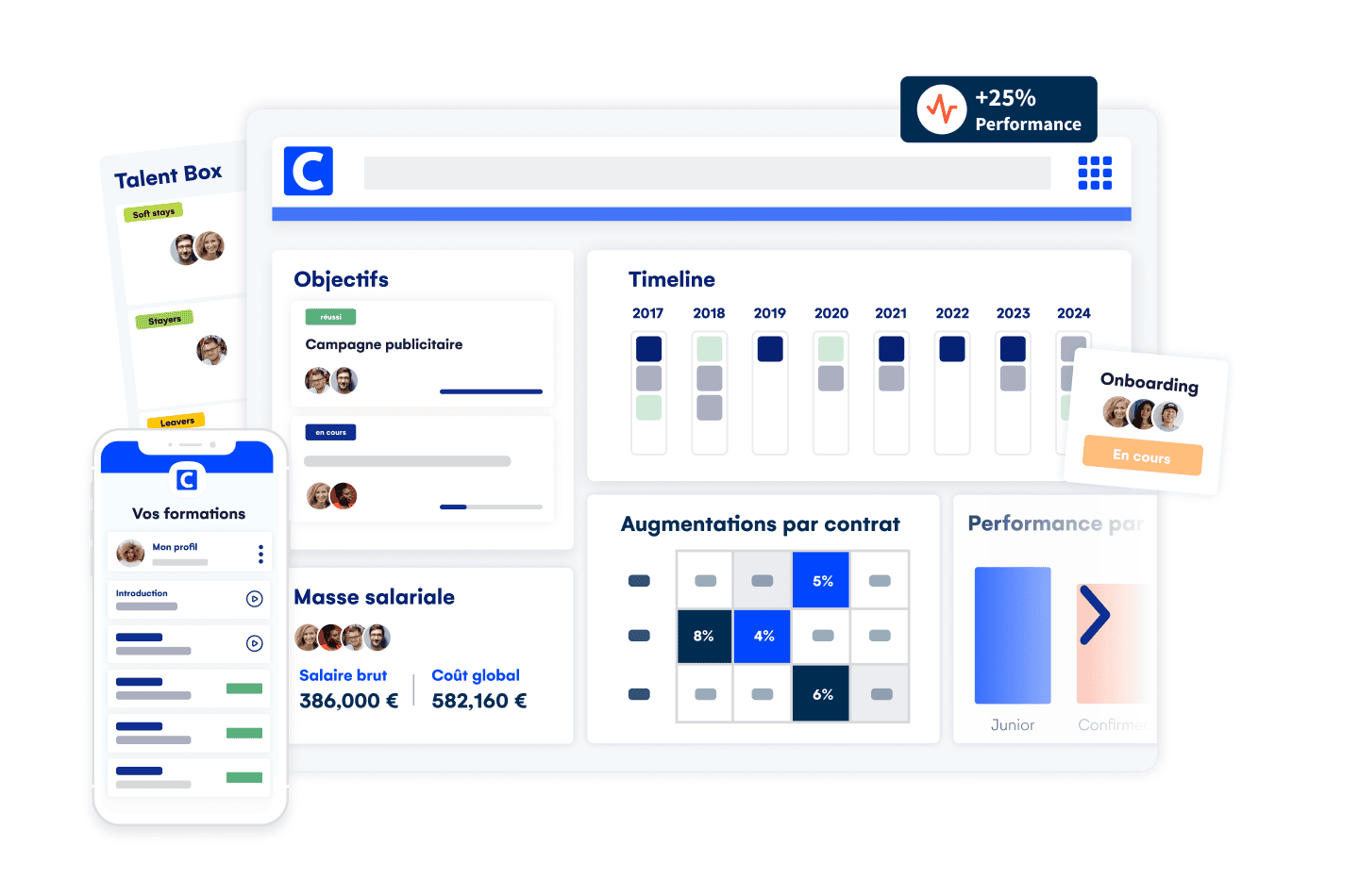 Quels que soient vos projets, vous les déployez rapidement, efficacement, et dans les meilleures conditions. Et ce, tout en respectant votre budget. Le retour sur investissement est visible et vous êtes en mesure d’évaluer le temps gagné sur chacun des processus du cycle des talents.
