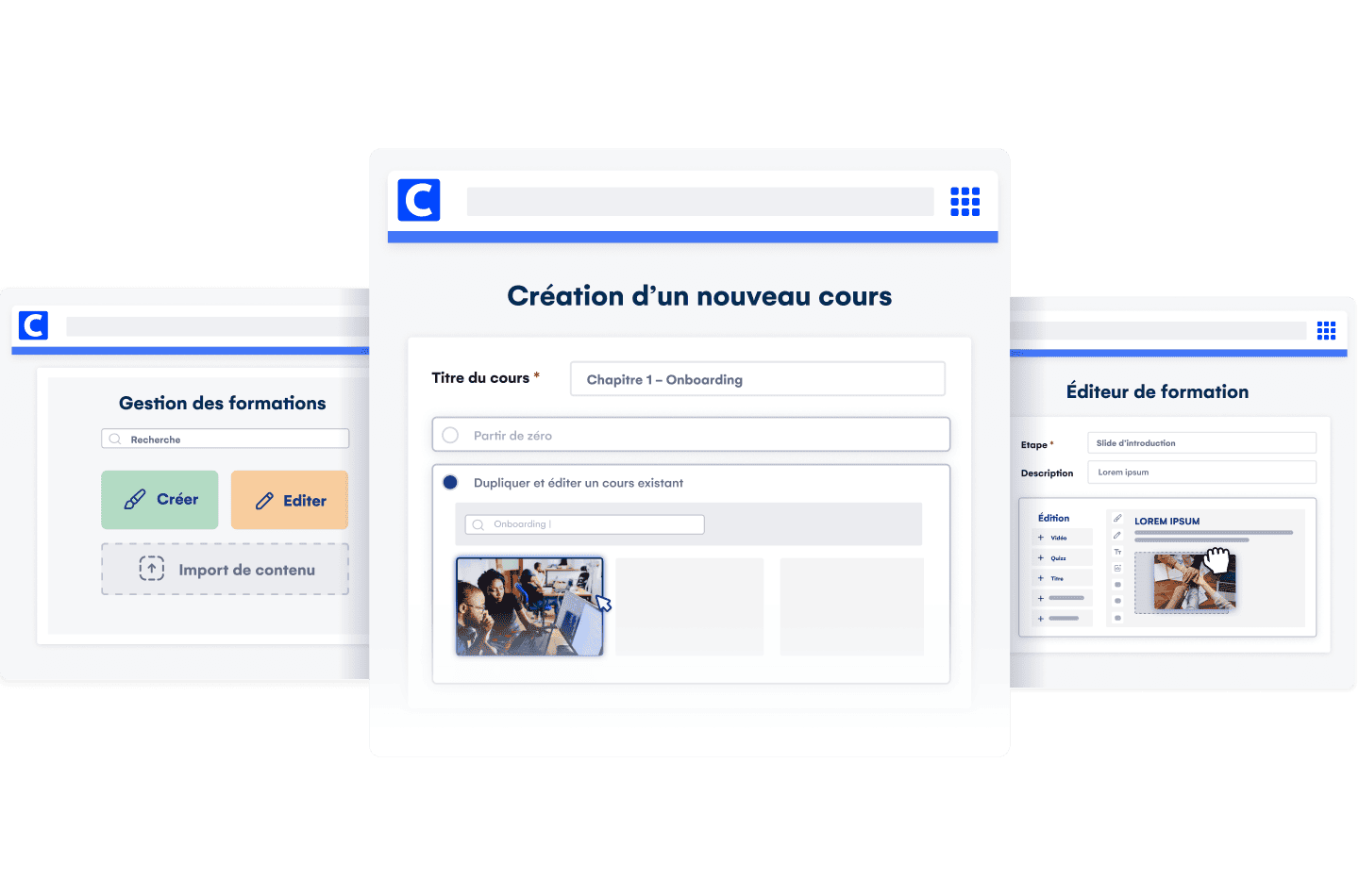 Avec notre solution, vous créez des parcours de formation personnalisés où les managers administrent les parcours, suivent les résultats de complétion et utilisent des contenus prêts à l’emploi (notamment pour le respect de la réglementation ou le développement durable).