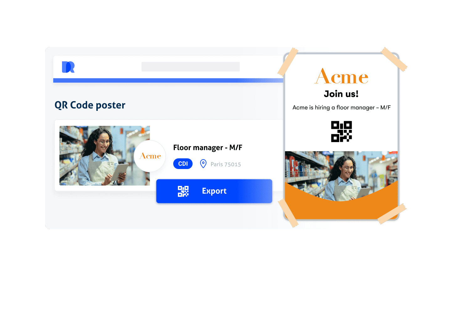 Do your candidates submit CVs in person? With Cegid Digitalrecruiters, your adverts can be exported with a single click to a QR Code for easier applications, offering your candidates an identical experience to the one on the web.
