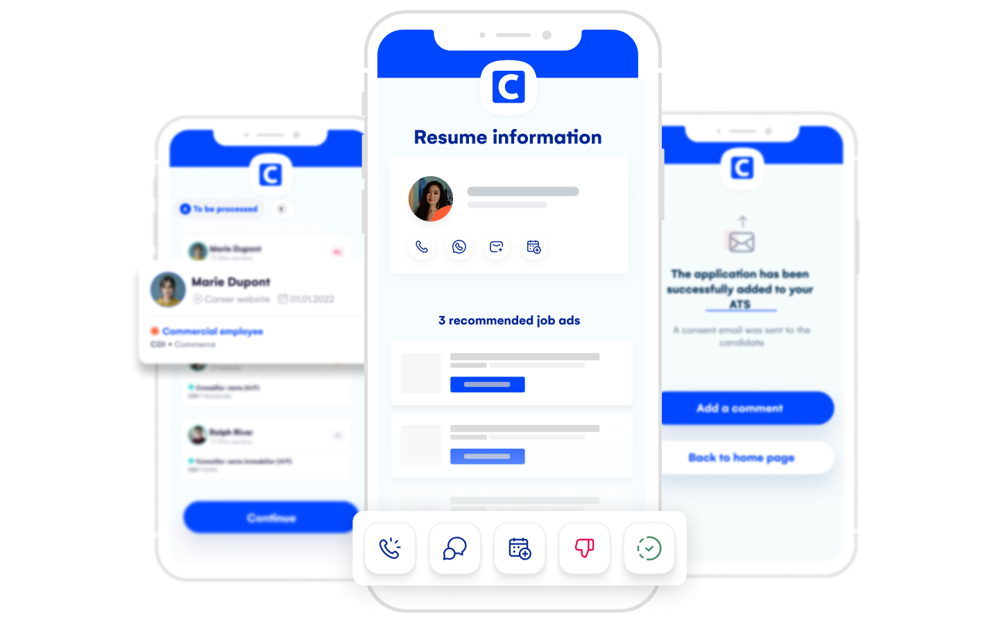 Save time every day with Cegid Digitalrecruiters. Whether you’re sorting candidates or communicating with them, our tools make your job easier: CV parsing, questionnaires, scorecards, assessments, personalized emails and SMS. All your actions are just a click away!