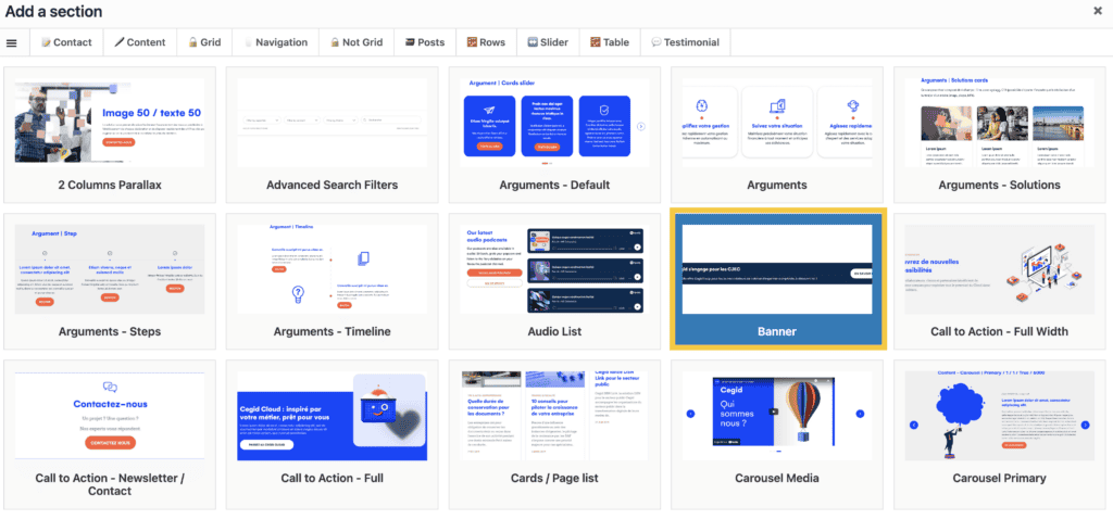 • Create your banners using the ‘Grid Builder’ or ‘Call to action’ component