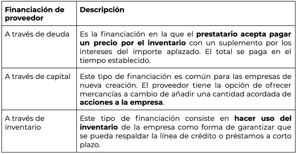 Antes de realizar la financiación con los proveedores se debe realizar un análisis de aquellos que son necesarios para la empresa. Una vez hecho esto, la financiación se puede realizar de las siguientes maneras: