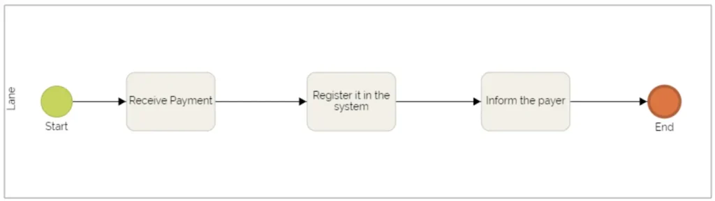 En primer lugar, un diagrama simple y sin detallar del proceso de recepción de pagos, con su inicio, final y tareas: