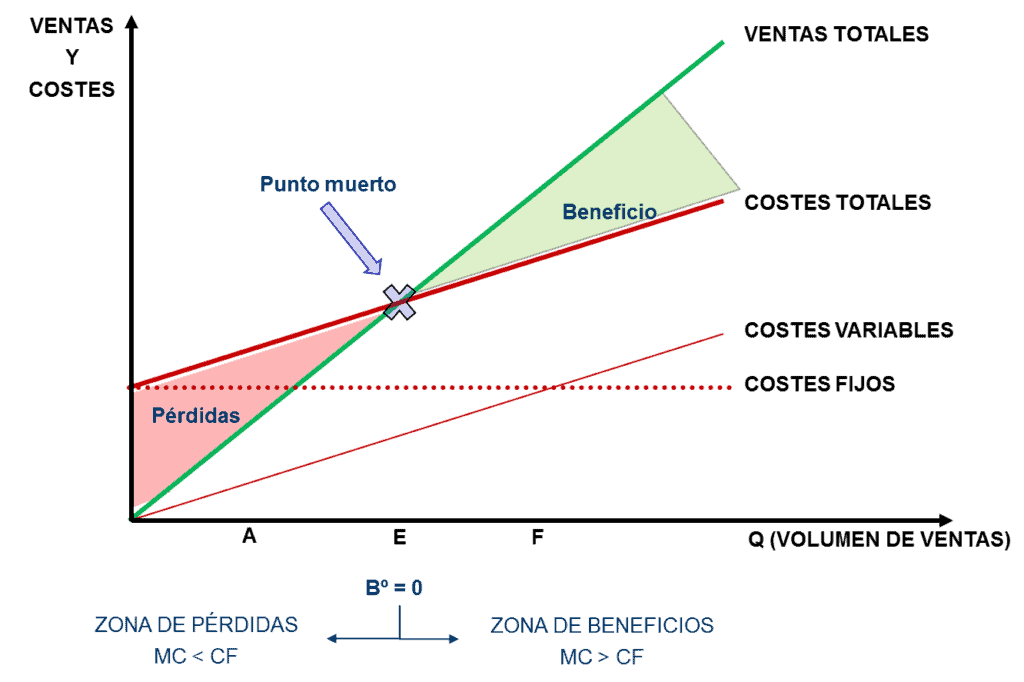 Es aquí donde nace el término de punto de equilibrio de una actividad empresarial, umbral de rentabilidad o punto muerto en la empresa, también conocido por su denominación anglosajona Break even Point.