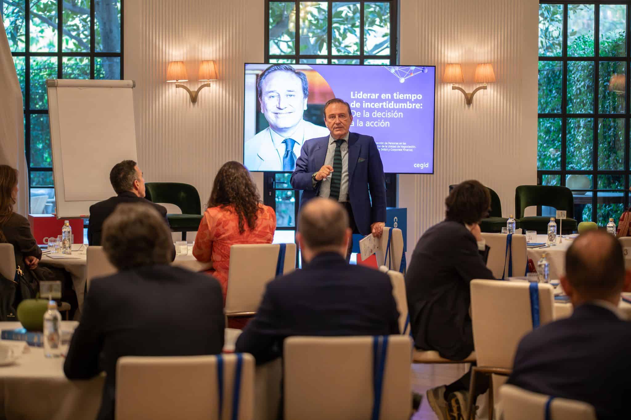 Guido Stein, profesor del IESE, socio de Inicia Corporate y experto en gestión de personas, abrió el evento con su conferencia «Liderar en tiempos de incertidumbre: De la decisión a la acción», donde habló de cómo los directivos pueden abordar desafíos como los cambios normativos, la competencia y las decisiones externas.