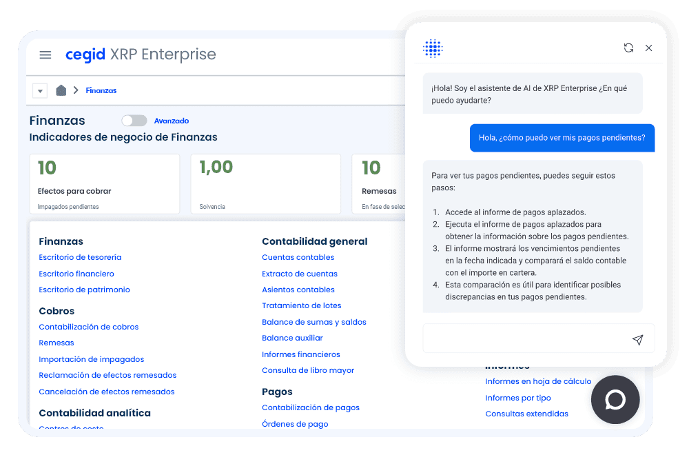 - El nuevo asistente financiero está disponible en Cegid XRP Enterprise, un ERP basado en Inteligencia Artificial, con el objetivo de potenciar el rol de los directores financieros a través de análisis financieros que mejoran la toma de decisiones.