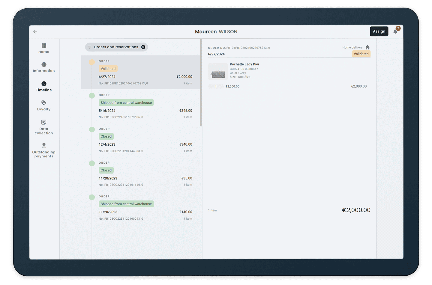 Personalizar el recorrido del cliente es crucial. Nuestras soluciones basadas en IA para las relaciones con los clientes, las promociones de ventas y los programas de fidelización permiten a sus equipos de tienda interactuar con los clientes y recomendarles los productos y servicios más adecuados en función de su historial y sus preferencias.