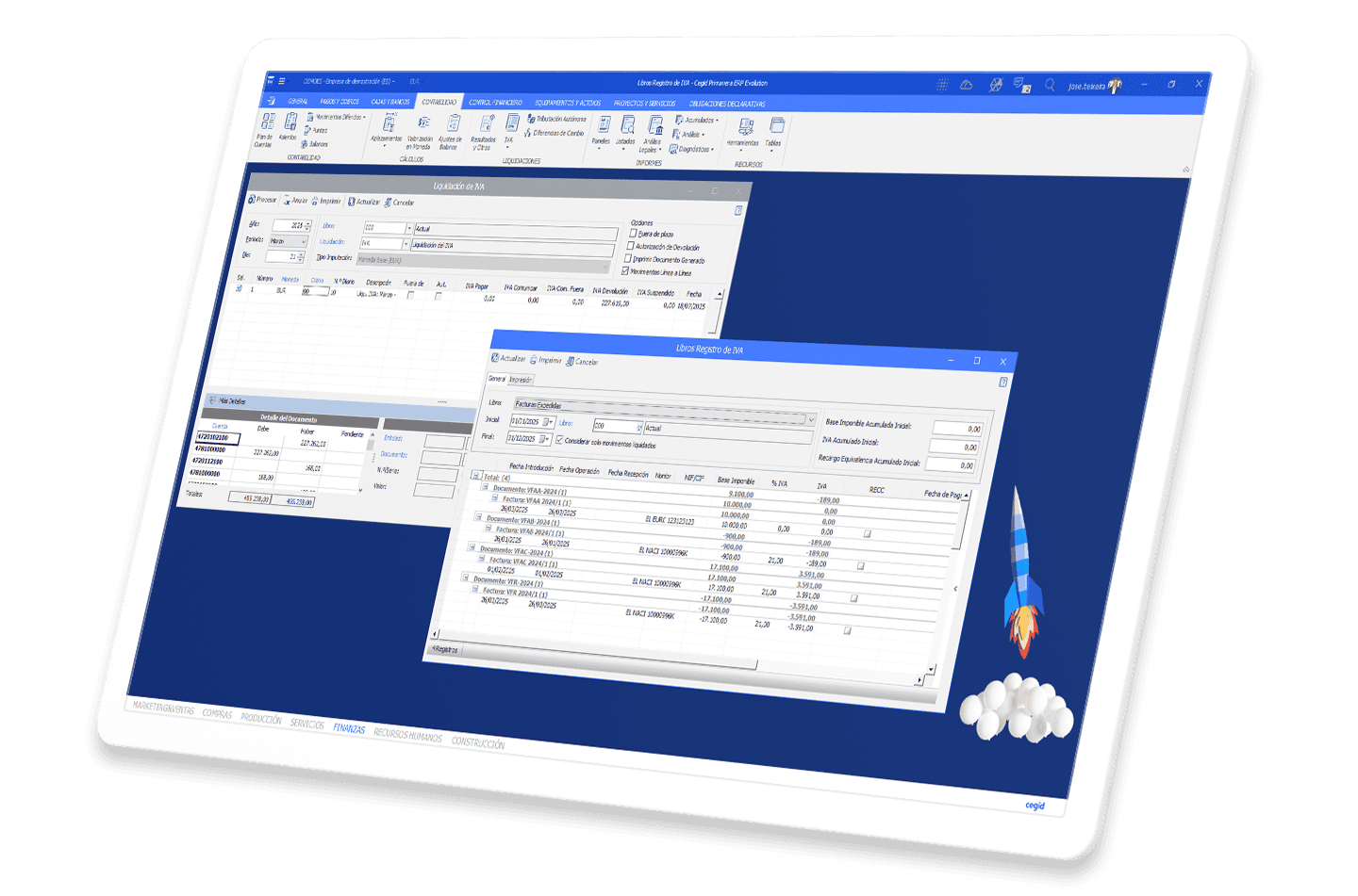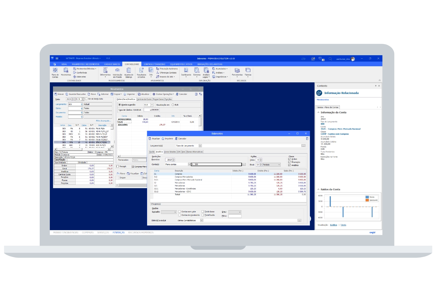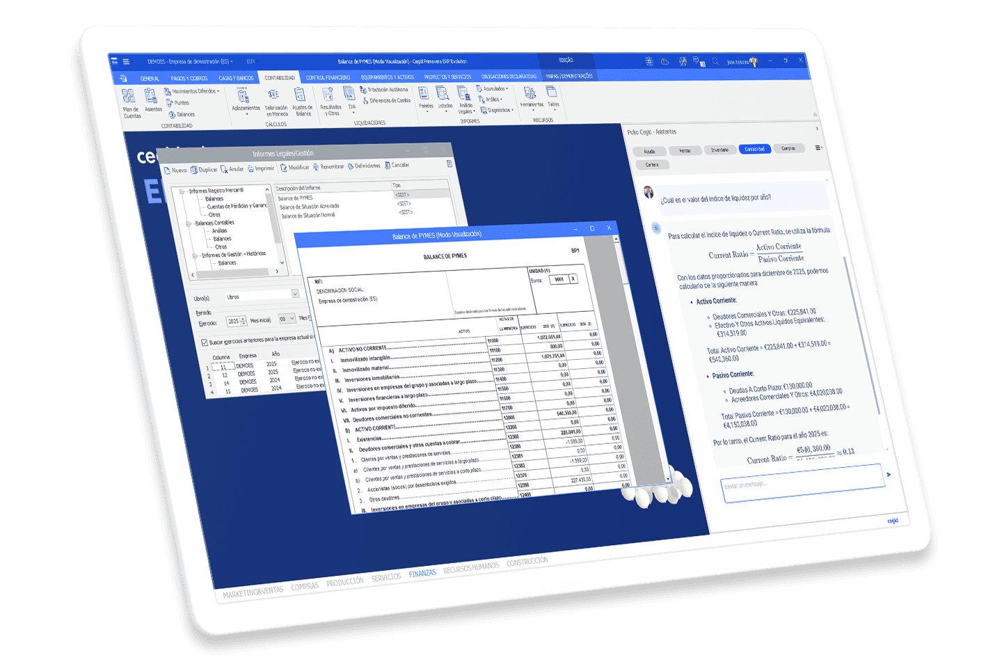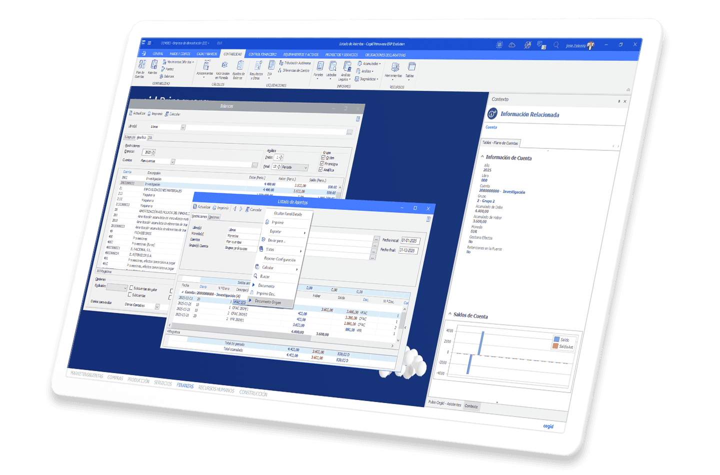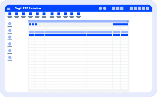 Con Cegid ERP Evolution podrás gestionar toda la contabilidad de tu empresa, desde la creación del ejercicio, presupuesto, plan de cuentas, asientos o la importación de documentos desde factura-e.