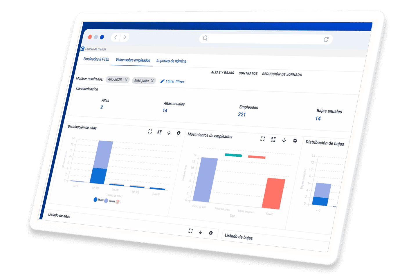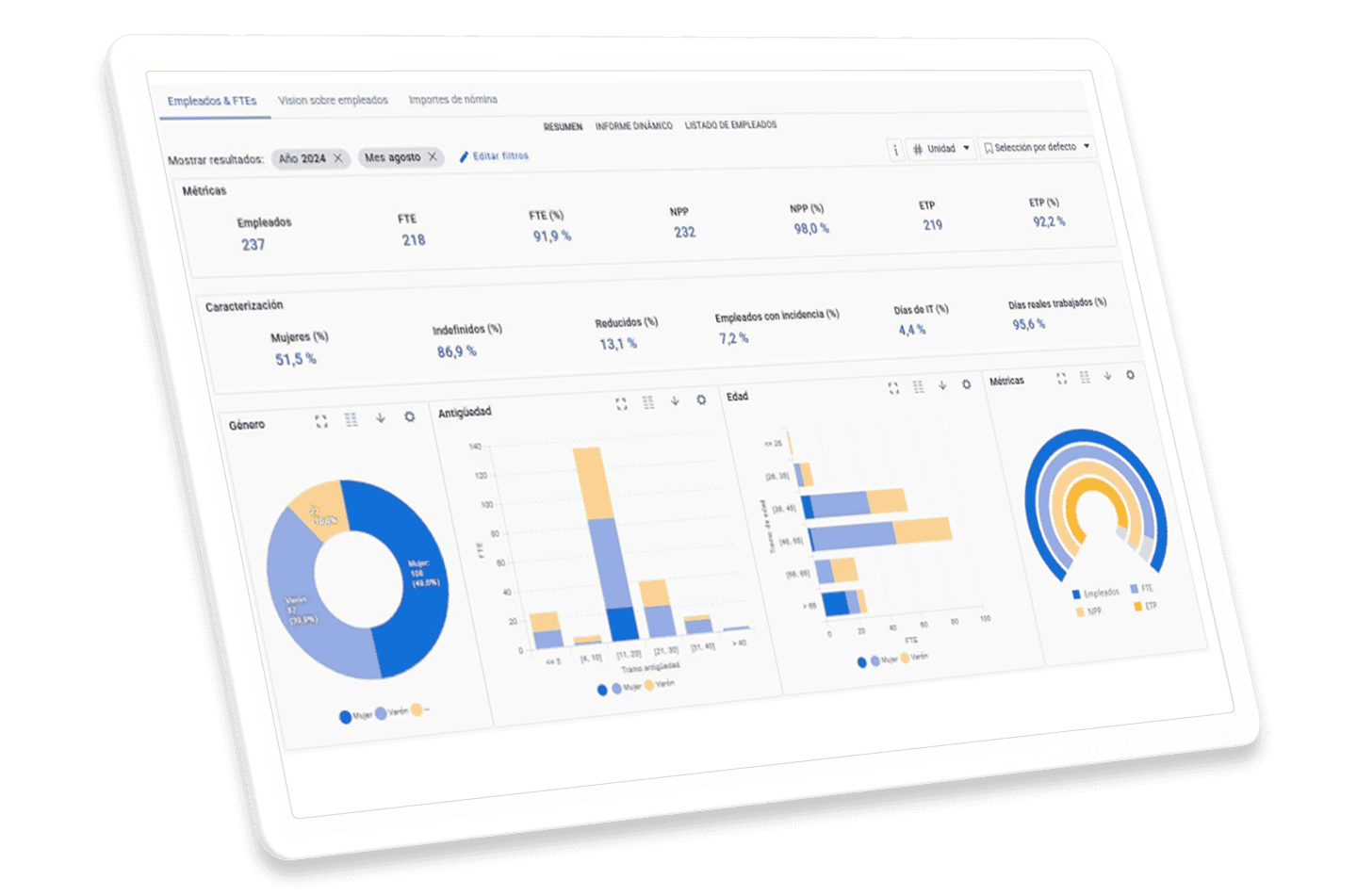 Una funcionalidad avanzada integrada en Cegid Peoplenet que permite analizar y visualizar los datos de empleados y nómina de forma interactiva, clara y estratégica.