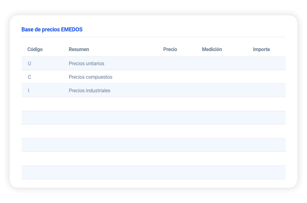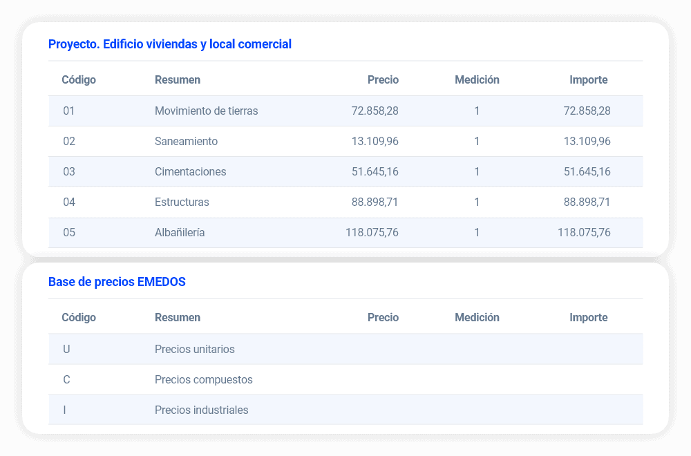 Crea presupuestos detallados y mediciones precisas para cualquier tipo de proyecto, sin importar la envergadura de la obra. Tanto si los elaboras para ti, como para terceros. Cuenta con la información de bases de precios estándar o personalizadas.