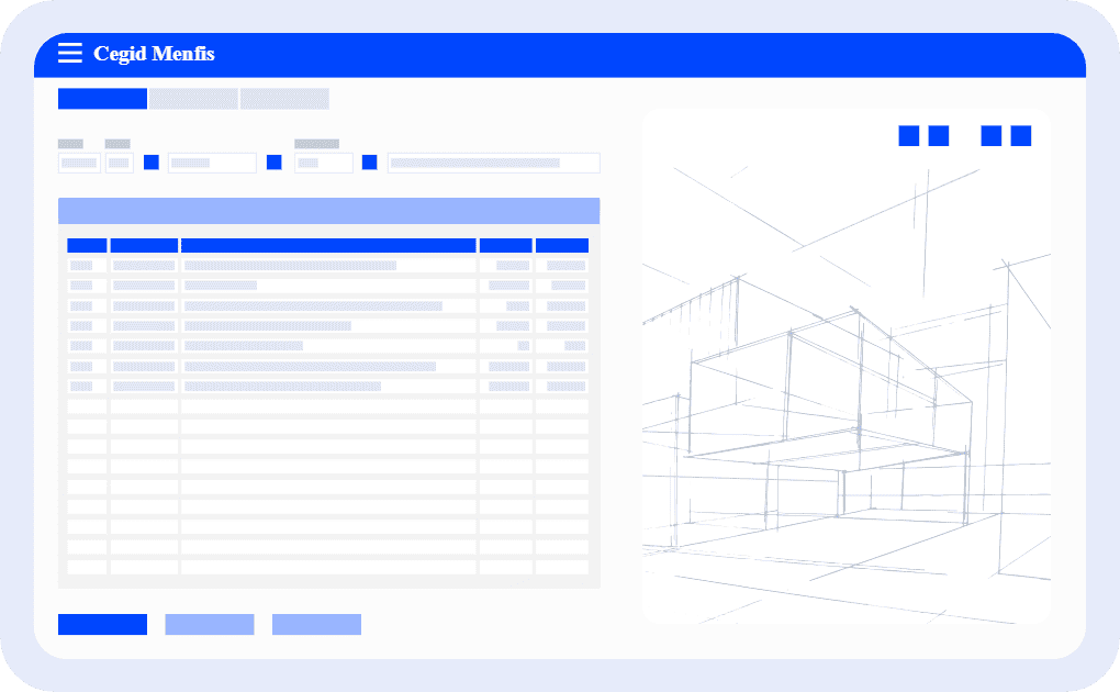 Cegid Menfis incluye todo lo que necesita un usuario profesional para la elaboración más completa de sus presupuestos. Por ejemplo, redactar un presupuesto que incluya descompuestos en tan sólo unos minutos es posible, apoyándonos en cualquier base de precios estándar del mercado, o utilizando la Base de Precios Cegid Menfis que incluimos con la aplicación.