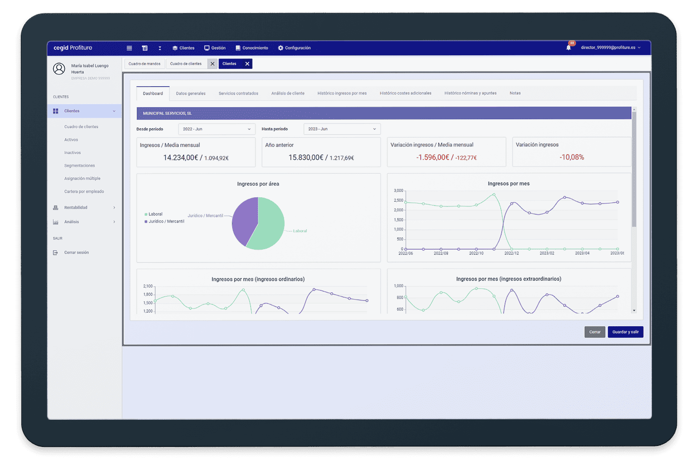 Profundiza en la cartera de clientes de cada empleado: número de clientes, apuntes, nóminas, grado de automatización de la contabilidad y cómo de actualizada está su información.