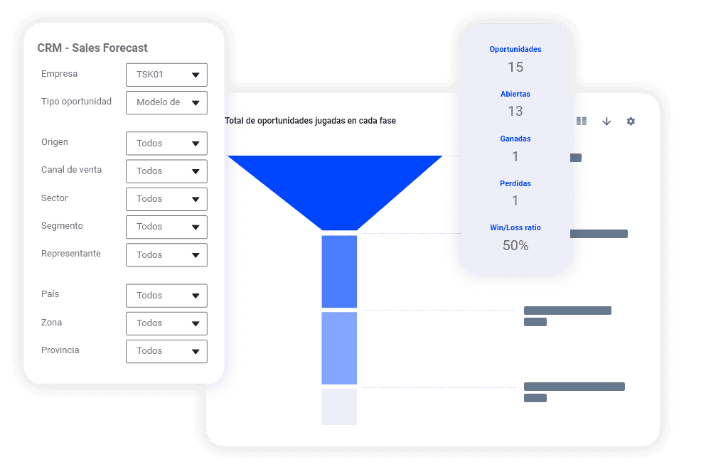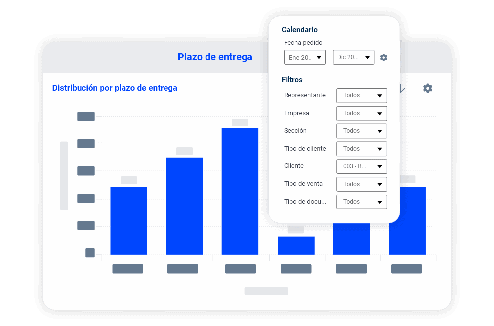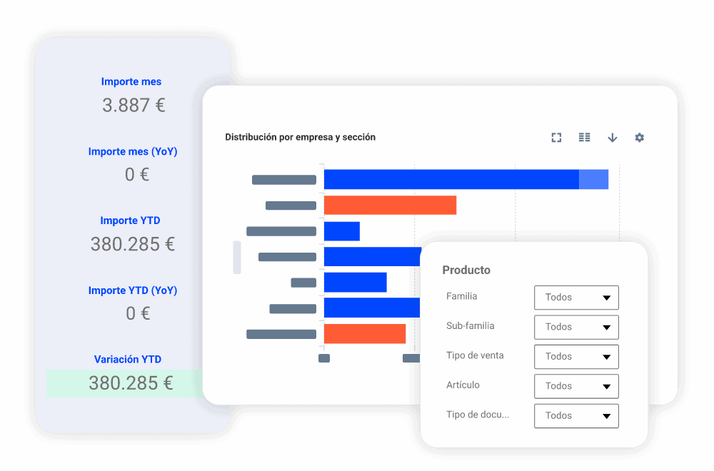 Visualiza en cualquier momento analíticas de la situación de tu negocio, totalmente actualizadas, integradas y personalizadas . Además, se puede conectar con otros sistemas de gestión existentes en tu empresa para que puedas ampliar aún más la perspectiva global de tus operaciones.