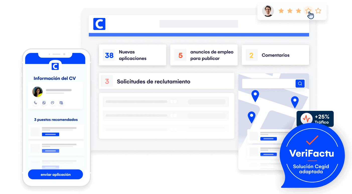 Crea fácilmente tu propio portal de empleo, publica tus vacantes y comunícate con tus candidatos para darles un seguimiento de los avances de su solicitud. Diseña un portal de empleo y un portal de candidatos que se adapte a tus objetivos, y que esté preparado para responder a un gran número de conexiones.