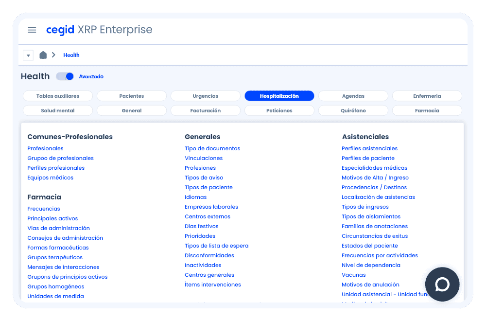 Gestiona hospital de día, centro de día, residencias, pisos tutelados, hospitalización de larga estancia, etc.