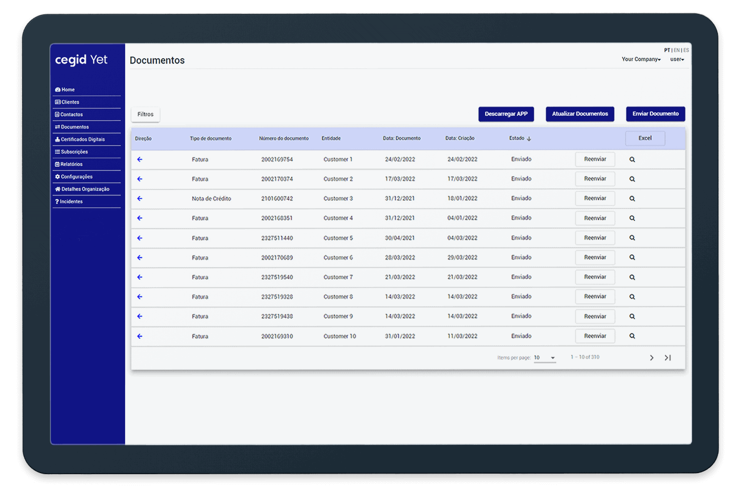 A solução Cegid Yet integra com qualquer software de gestão (ERP) de forma simples e rápida, permitindo automatizar todo o fluxo de gestão da documentação comercial, desde o envio, receção, processamento, tratamento e arquivo dos documentos, garantindo celeridade e rigor da informação.