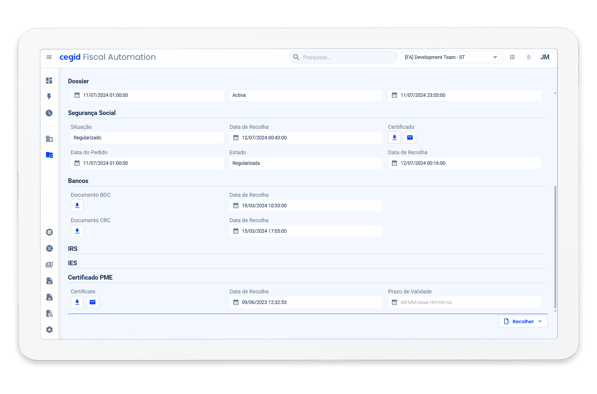O Fiscal Automation garante a recolha automática dos comprovativos do cumprimento das obrigações à Autoridade Tributária e Segurança Social.