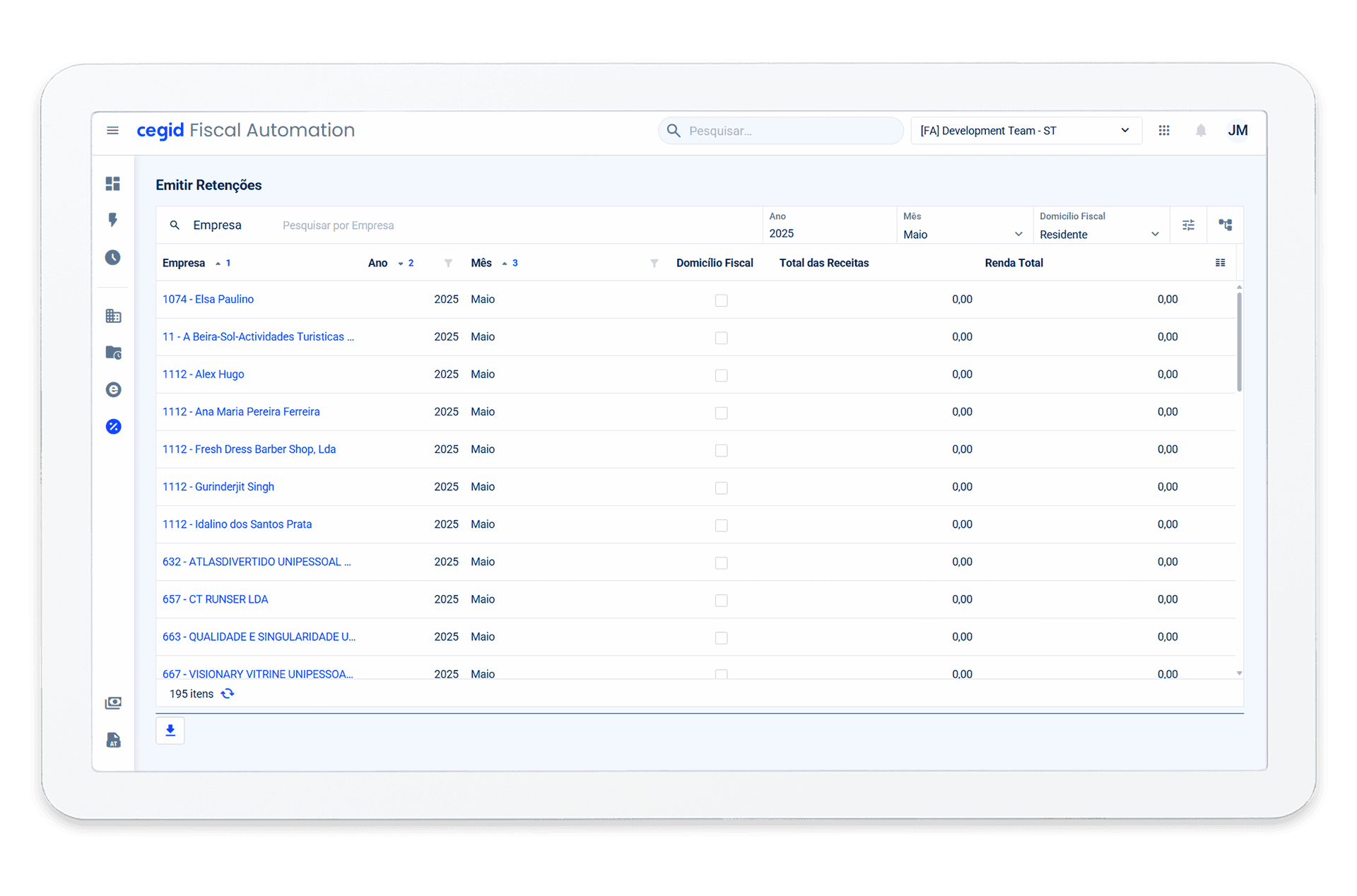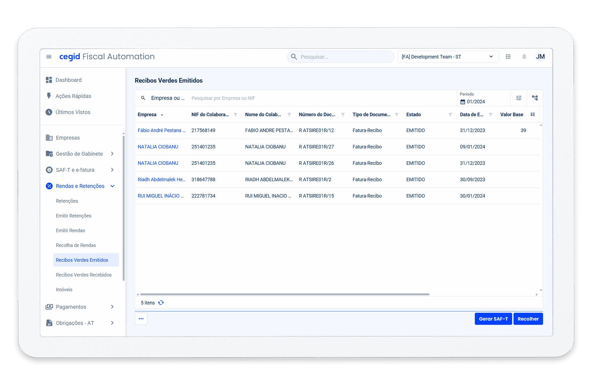 Através do Cegid Fiscal Automation é possível recolher automaticamente os recibos verdes e recibos de rendas emitidos aos seus clientes. Para além de ficar com toda a informação disponível na plataforma, ficará também com o valor pré-preenchido para emissão das guias de retenção.
