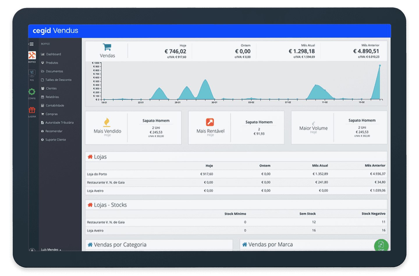 Através de um software de faturação online e gestão inteligente passa faturas em qualquer lugar, controla os pontos de venda, acompanha os resultados das vendas e o estado dos stocks em tempo real, envia documentação para o contabilista em segundos, cumpre facilmente as obrigações fiscais e ainda obtém informação que ajuda a gerir de forma eficiente.