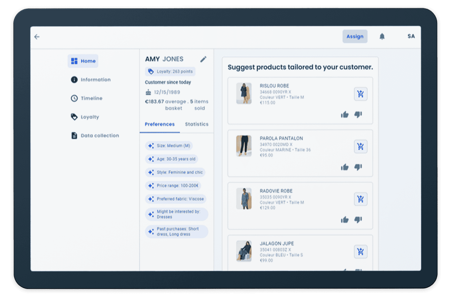 La personalizzazione del percorso del cliente è essenziale. Le nostre soluzioni AI per le relazioni con i clienti, la promozione delle vendite e la fidelizzazione consentono ai vostri team in negozio di interagire con i clienti e di offrire loro i prodotti e i servizi più appropriati in base alla loro storia o alle loro preferenze…