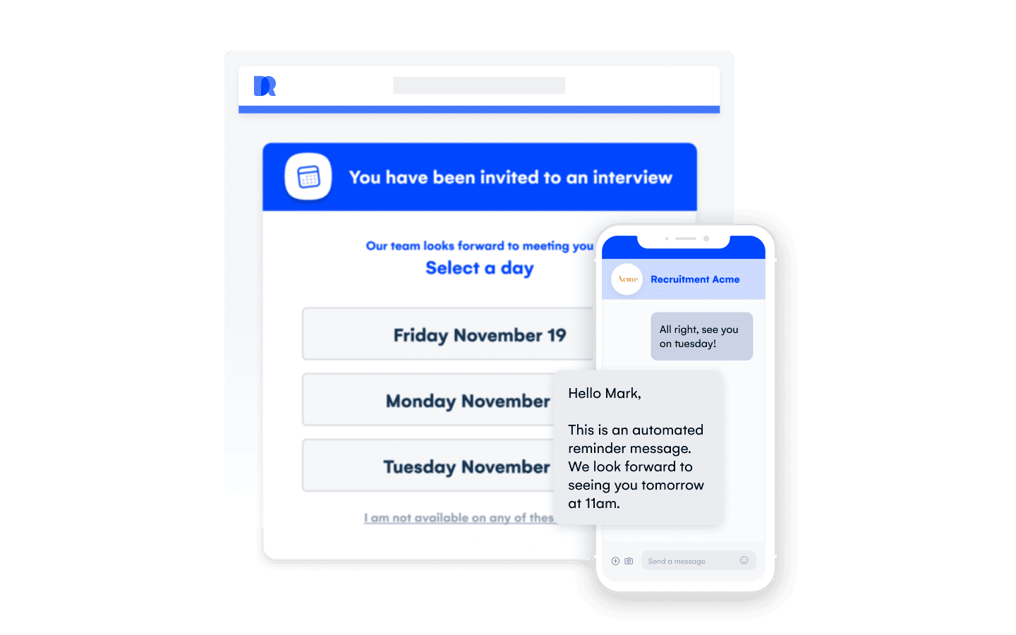 Verlies geen tijd meer met het organiseren van sollicitatiegesprekken of het sturen van herinneringen aan kandidaten! Talent Acquisition stroomlijnt al deze processen met innovatieve oplossingen zoals ‘self-service’-sollicitatiegesprekken gekoppeld aan de agenda’s van recruiters en automatische herinneringen aan uw kandidaten.