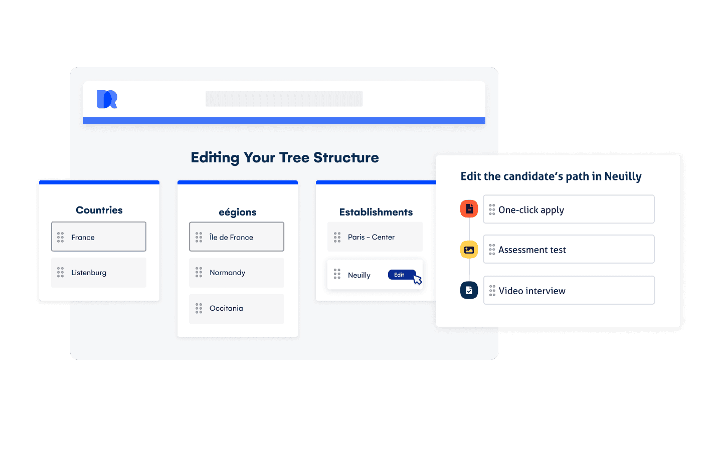 Laat in Talent Acquisition zien hoe je organisatie in elkaar zit en activeer in slechts een paar klikken aangepaste selectietrajecten per organisatieonderdeel, functie en werkgebied. In elke context definieer je de vereiste informatie om te solliciteren, configureer je je selectievragenlijst en stel je de juiste vorm voor het sollicitatiegesprek vast (fysiek, online of via video).