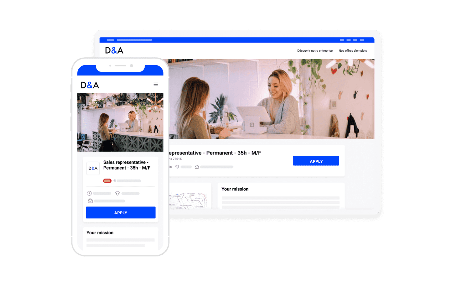 Bied je kandidaten de best mogelijke ervaring, overal en altijd. In enkele klikken wordt je carrièresite automatisch aangepast aan het medium (desktop, mobiel, tablet) of aan de taal van de kandidaat, vanaf de presentatie van het bedrijf tot aan de inbehandelingname van de sollicitatie.
