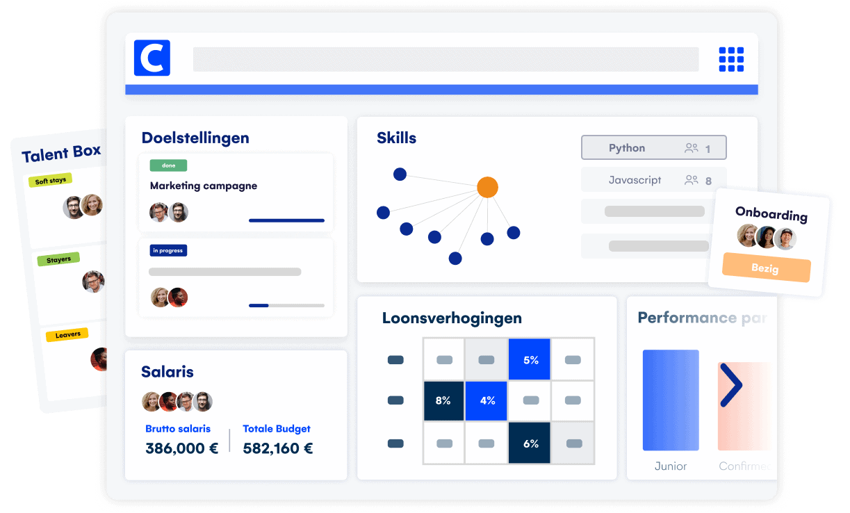 Laat in Talent Acquisition zien hoe je organisatie in elkaar zit en activeer in slechts een paar klikken aangepaste selectietrajecten per organisatieonderdeel, functie en werkgebied. In elke context definieer je de vereiste informatie om te solliciteren, configureer je je selectievragenlijst en stel je de juiste vorm voor het sollicitatiegesprek vast (fysiek, online of via video).