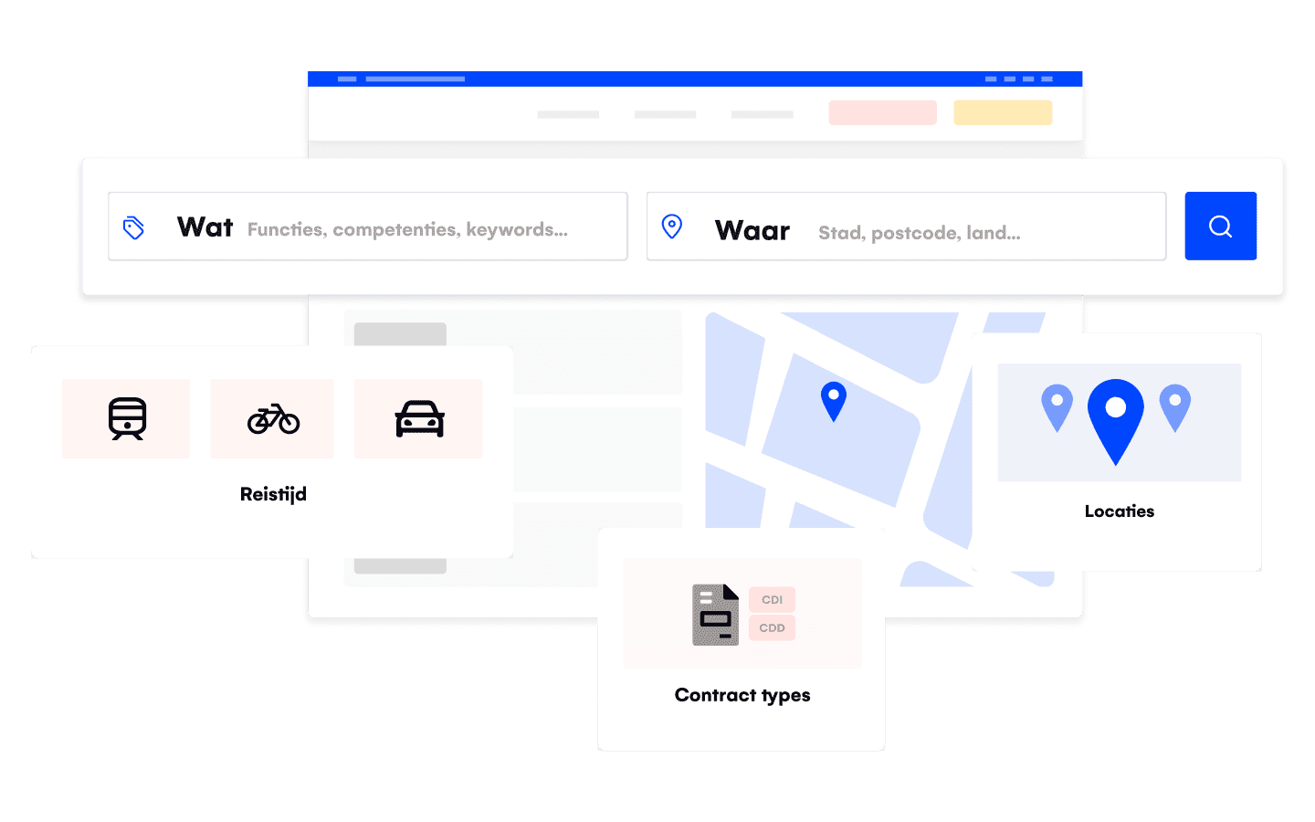 Zoeken op locatie, merk, trefwoorden, reistijd? Je carrièrewebsite biedt het beste van het web, zodat de candidate experience in lijn is met je employer branding.