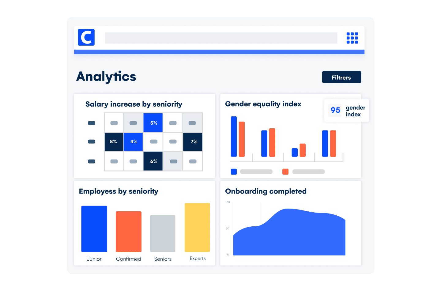 Oavsett om ditt företag har 10, 100 eller 1000 anställda kan du följa var och ens karriär med hjälp av avancerade analysverktyg och intuitiva instrumentpaneler. De ger dig en överblick över alla talanger inom detaljhandelssektorn. Tack vare denna 360º-vision kan du fatta välgrundade beslut för att uppnå dina tillväxtmål.